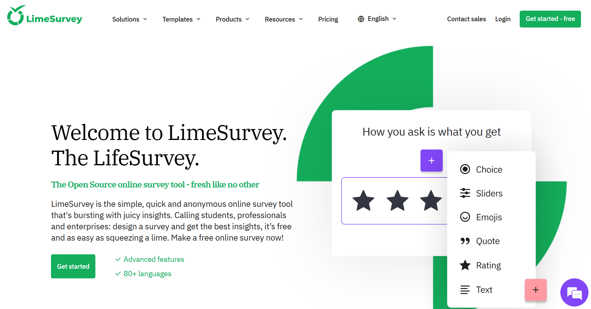 | LimeSurvey | Unlimited surveys, questions, and responses (self-hosted) | Pro €34/mo (starts) | Open source, custom | G2: 4.1 | Academia, Govt |