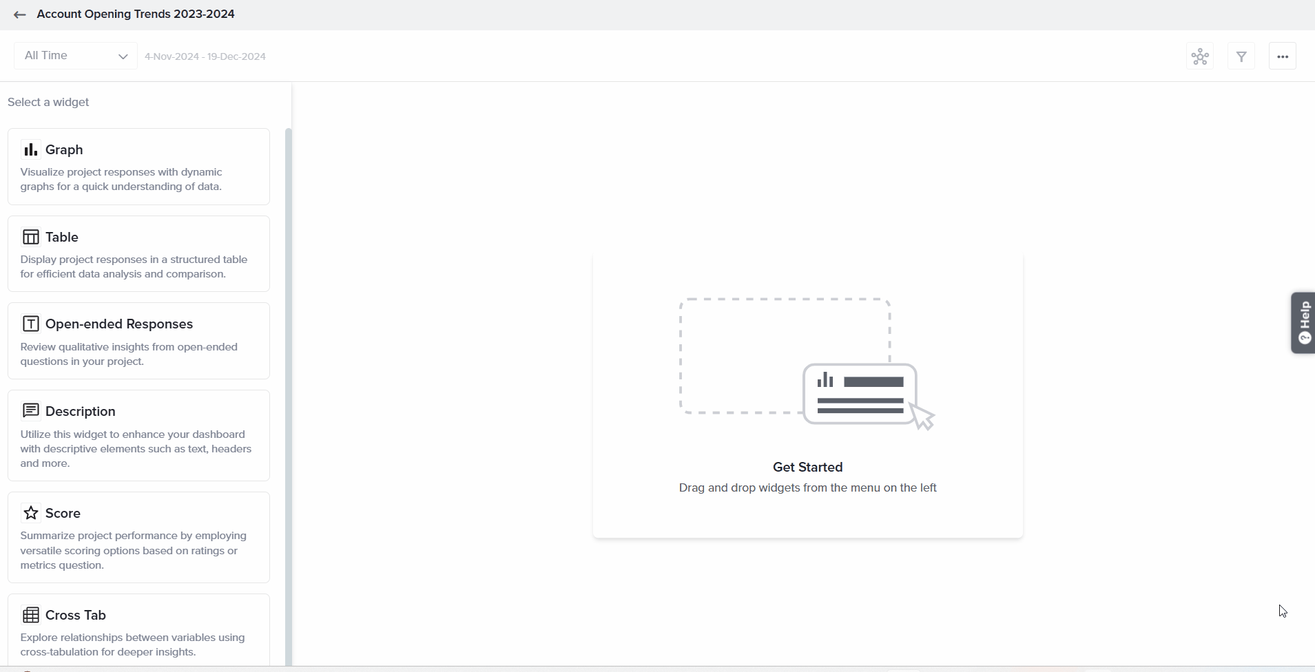 - Select a widget of your choice and drag it onto the canvas. For more information on widgets, click here.