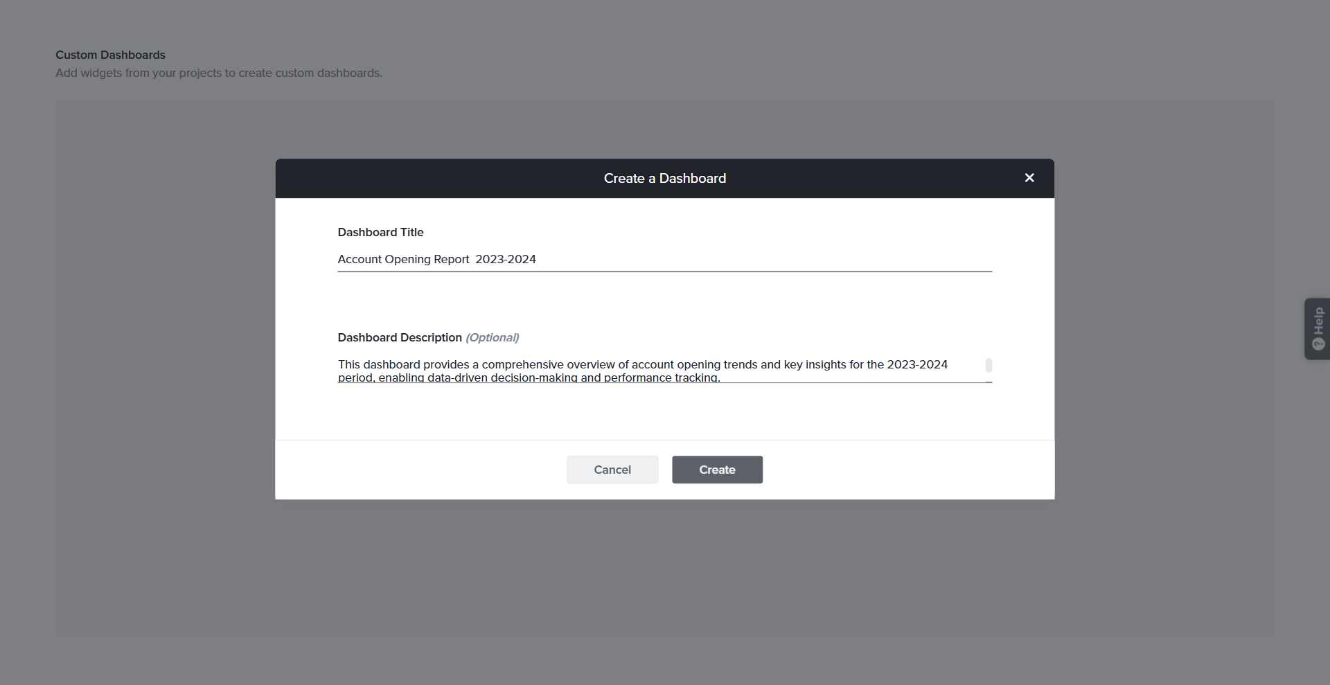 - Enter the desired title and description in the dialogue box, then click Create. These details can be edited later.