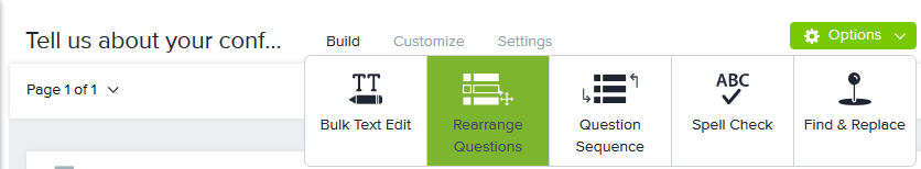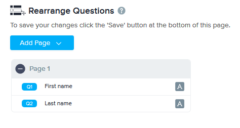 3. Rearrange Button – On the survey level toolbar, rearrange lets you drag and drop questions to move them around. In Rearrange, you can also click Add Page to arrange questions on a new page.