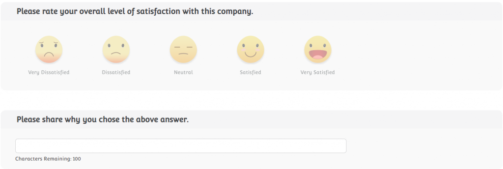 Surveys are the “big easy” of all customer feedback options. Why? Companies find it a straightforward process. By structuring it around a well-proven survey feedback template science, they are simple to distribute and a cinch to analyze. The best results emerge when surveys are a maximum of ten questions, going down to as low as one. You don’t want responders to abort the exercise because it’s too involved. Quick responses to thoughtful questions can do wonders for your investigations with eager audience participation. For example: