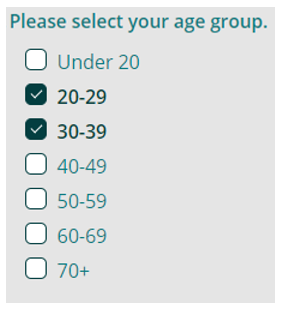 Example B is a Multiple-select question type and is useful when the participant should select multiple answer options from a list. Age doesn’t make sense here.