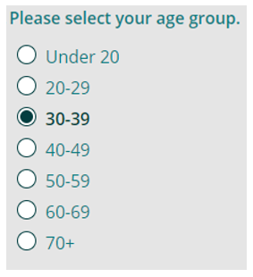 Hopefully you chose example A. Single-select question types are useful when the participant should be selecting only one answer option, such as their age group.
