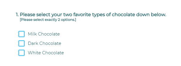 To improve data quality, you may add Answer Constraints to control the exact, minimum, or maximum number of answers a participant may select.