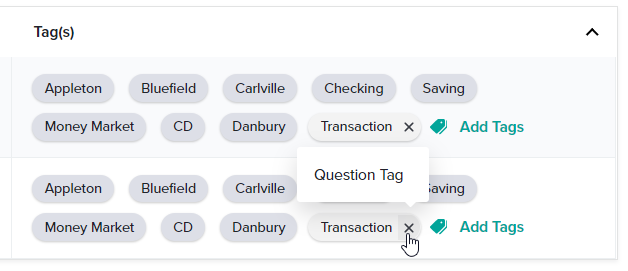 - While reviewing Tags, question-level Tags will be light gray and response-level Tags will be shown in dark gray. Hover to display the Tag type.