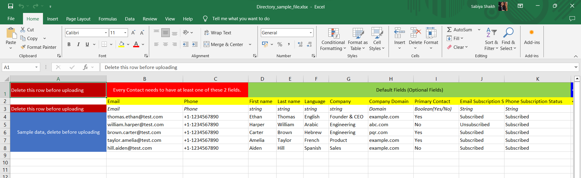 - Download the sample file provided and format your data accordingly in Excel or CSV format.