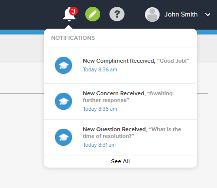 - Click on the bell icon to reveal a quick view of the current notifications.