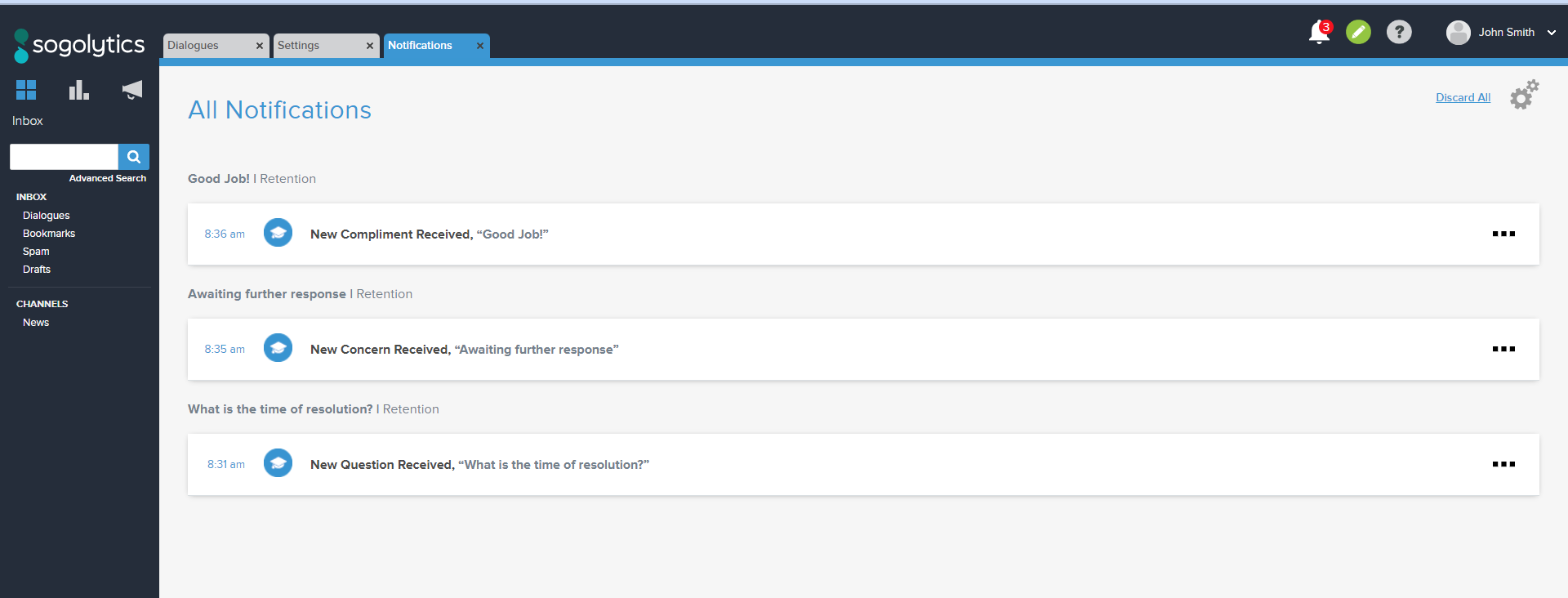 - Click on any notification to take you to the respective Dialogue.