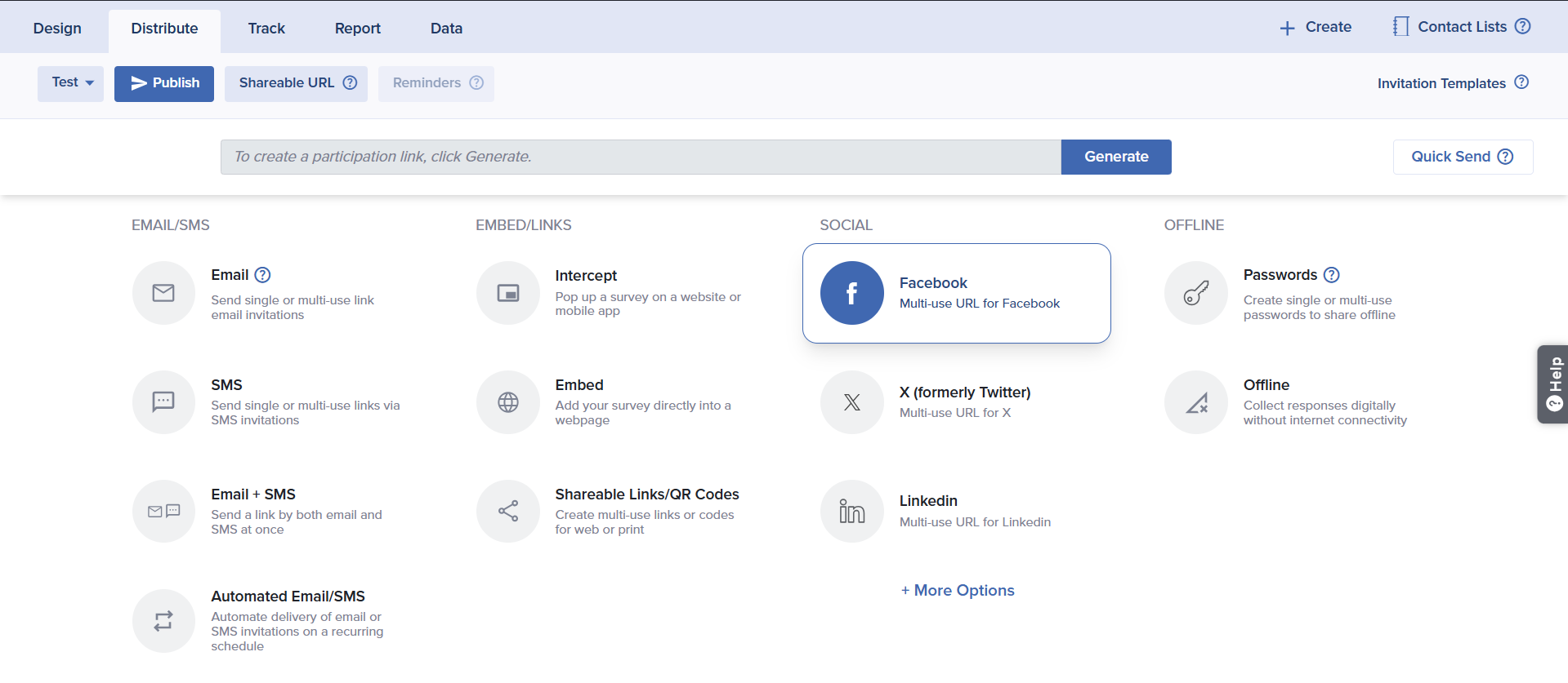 - Choose Authenticate Participation to authenticate your responses. This will require participants to provide either Facebook or LinkedIn credentials before participating.