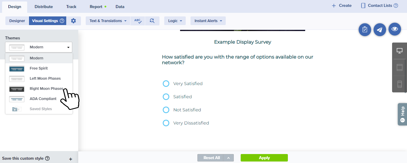 4. From the menu on the left, click on the Themes dropdown, then make a selection from the available styles.