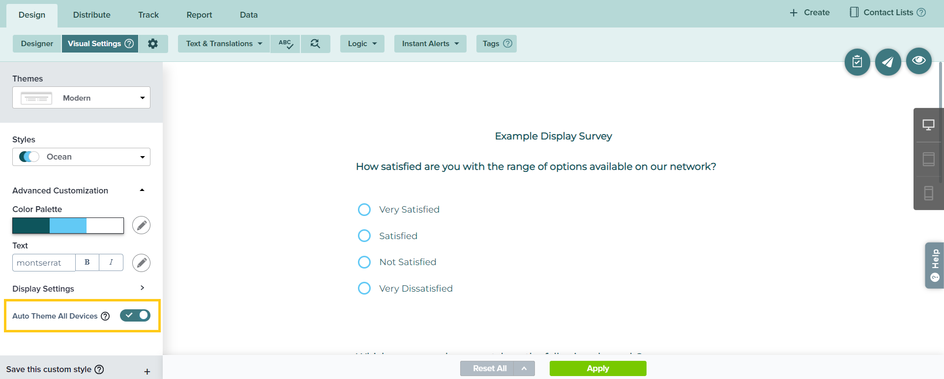 11. By default, Visual Settings for web and mobile are linked. All changes will be reflected on both web and mobile participation. To unlink, you can turn off the toggle “Auto Theme All Devices”. Once unlinked, you’ll need to update Visual Settings separately for each mode (Web and Mobile).