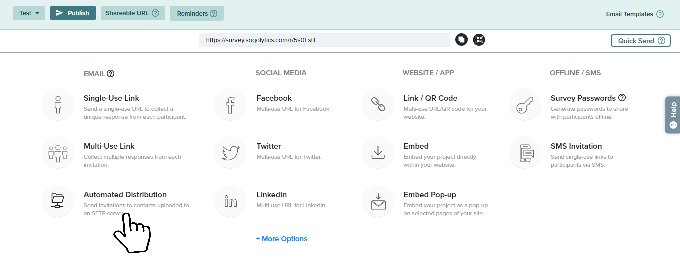 • A new automated distribution option will be displayed on the Publish menu at the bottom of the Email column.