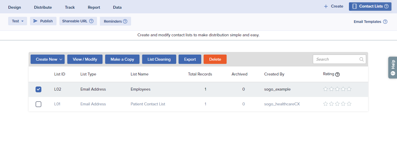 As updates are received in Track Survey, Contact Lists will automatically be updated. Since your Lists may include bounced addresses or contacts who have opted out, you can clean your Lists to archive or delete those contacts.