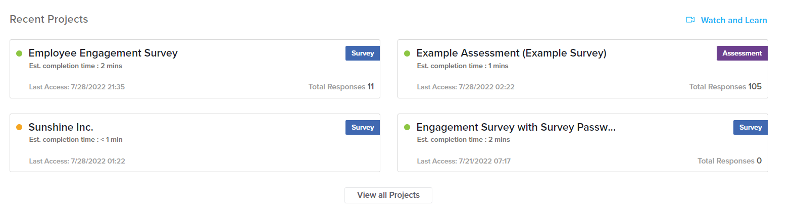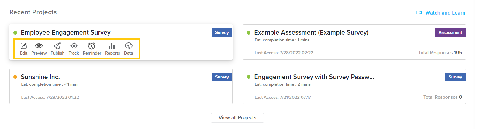 - Total responses: The number in the bottom right of the tile is the total count of responses received for this project.