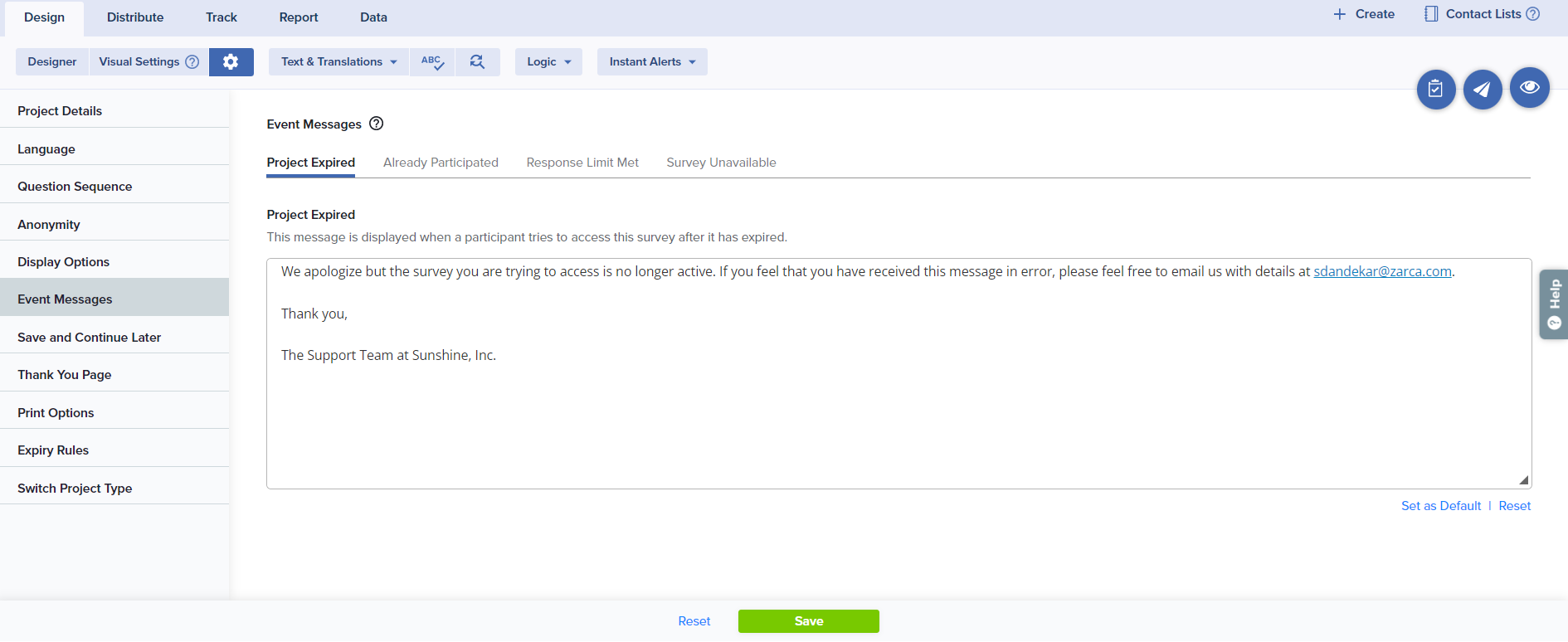 - Project Expired: Message is displayed to participants trying to access an expired survey.