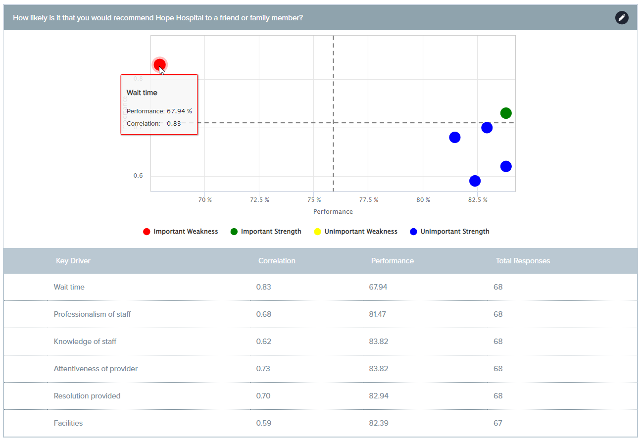 While results will certainly show patients’ overall satisfaction, the most valuable insights will come from Key Driver Analysis. KDA will identify patients’ satisfaction with each aspect of their experience, but even more importantly, it will show which aspect (driver) has the greatest impact on patients’ likelihood of giving a high overall satisfaction rating.