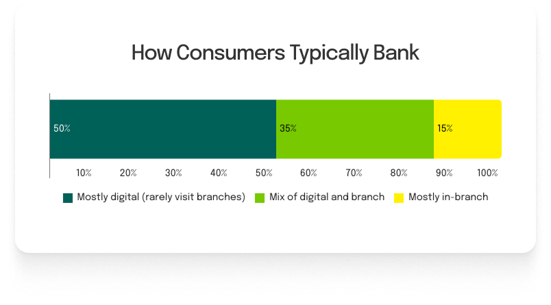 - 50% of customers now primarily bank through digital channels, reinforcing the importance of digital performance, even among customers 65+.